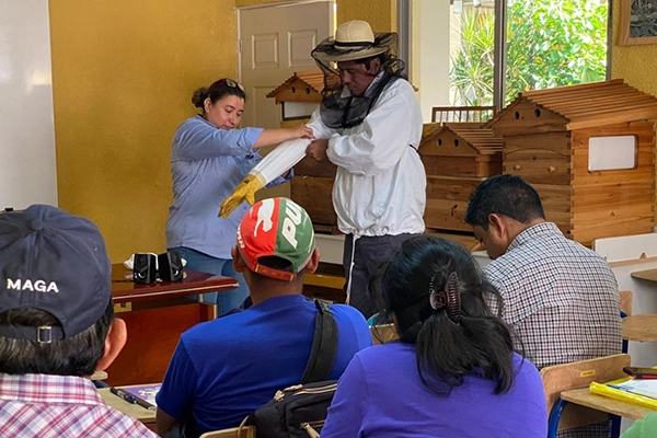 Participan técnicos del MAGA y representantes de fincas de Suchitepéquez, quienes durante esta jornada adquirirán herramientas clave en apicultura, meliponicultura, técnicas de laboratorio y elaboración de subproductos de la colmena.