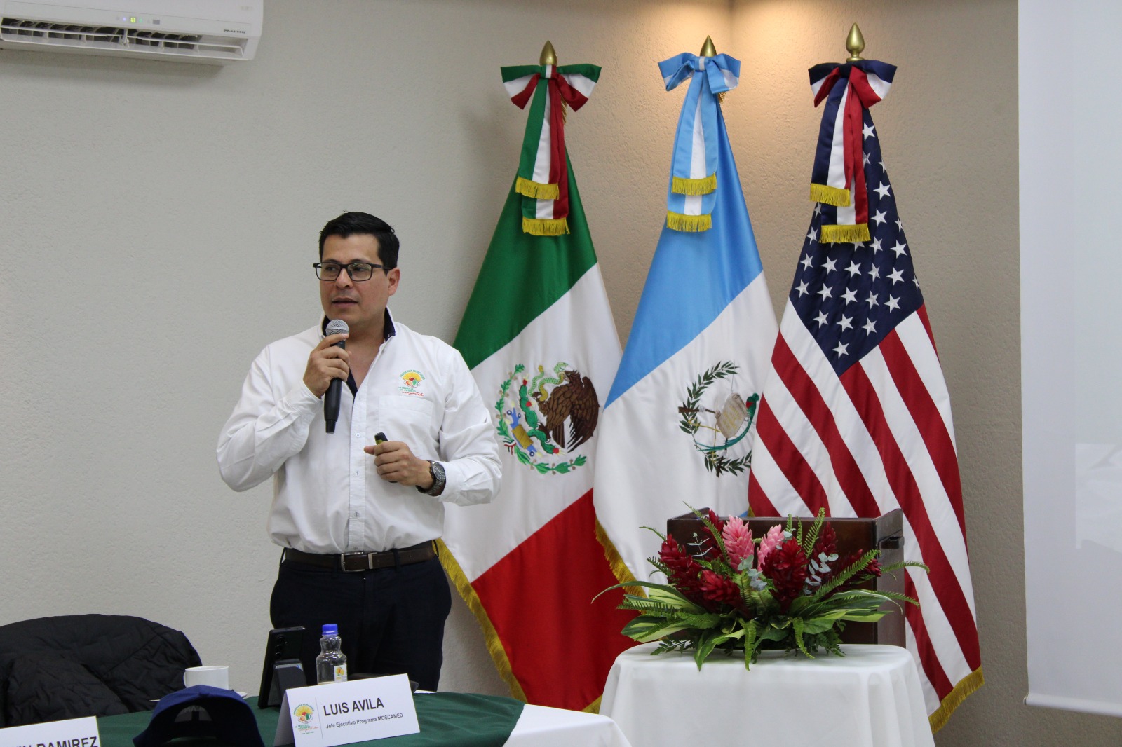 El Ing. Luis Ávila, Jefe de MOSCAMED Guatemala, agradeció a todos los participantes por su visita; destacó que el Programa MOSCAMED forma parte de un acuerdo trilateral entre USDA Guatemala U.S. Department of Agriculture , SADER y MAGA; expresó su reconocimiento a los participantes por acompañar esta jornada técnica.
