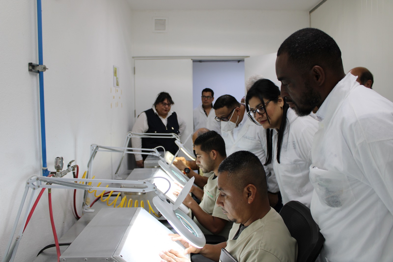 Observaron las etapas de preparación de dietas, el manejo de colonias base, los procesos de amplificación y la producción masiva de machos (moscas), así como las fases de esterilización y preparación para su envío a los diferentes destinos.