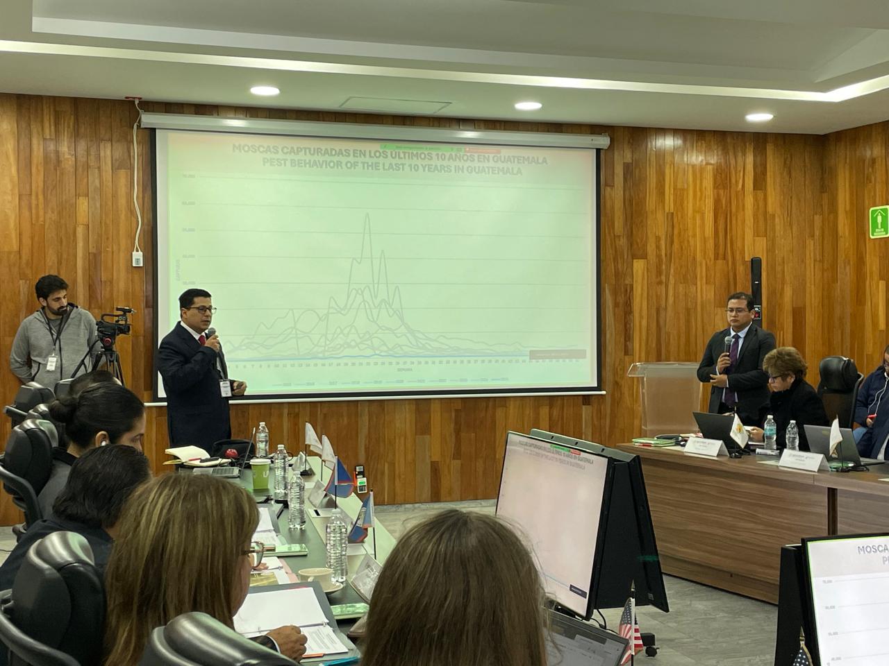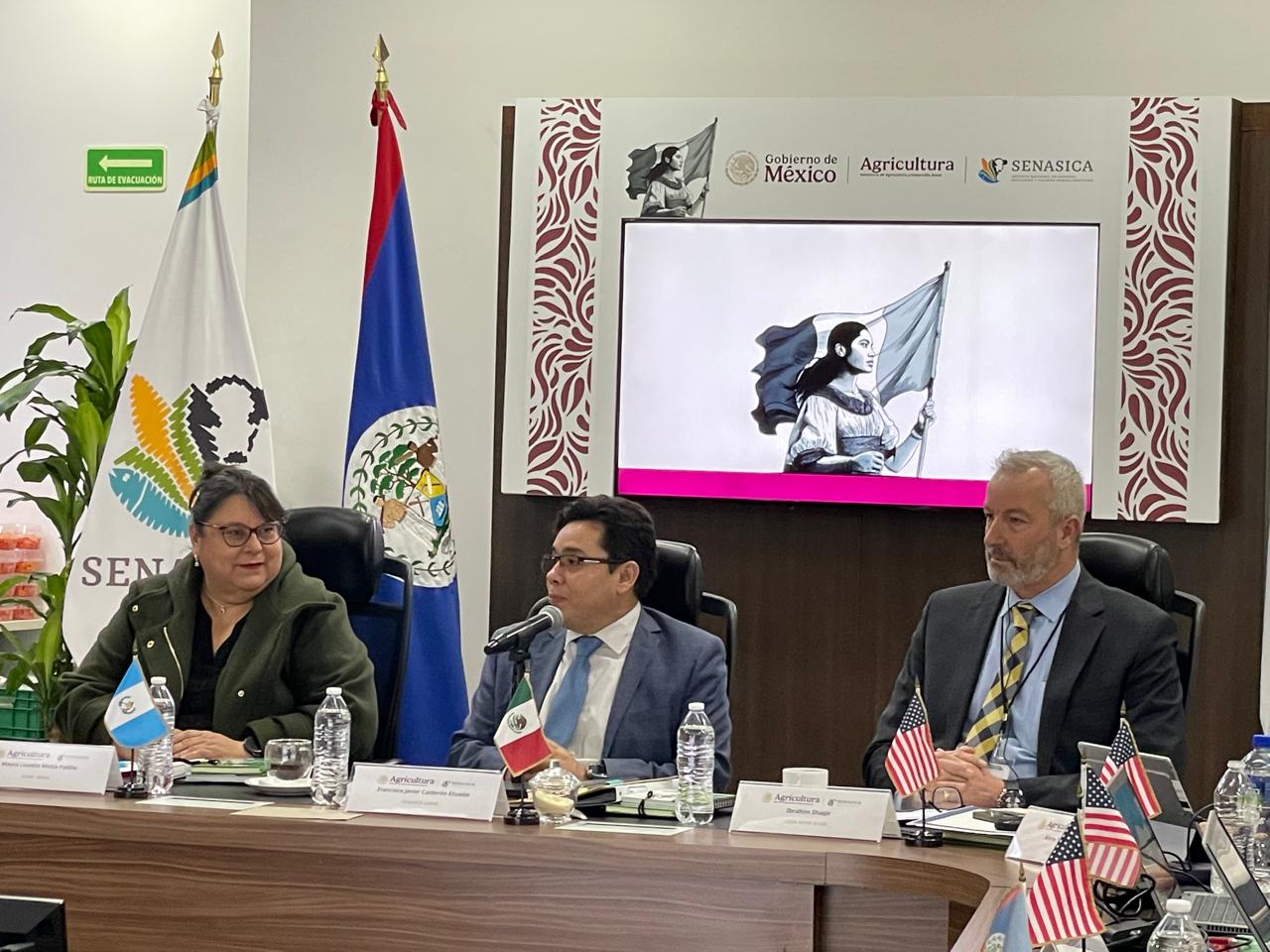 Delegados por país (de izquierda a derecha): Guatemala: Dra. Mayra Lissette Motta Padilla, Viceministra de Sanidad Agropecuaria y Regulaciones (MAGA); México: Ing. Francisco Javier Calderón Elizalde, Director en Jefe del Servicio Nacional de Sanidad, Inocuidad y Calidad Agroalimentaria (SENASICA); Estados Unidos: Mr. Ibrahim Shaqir, Administrador Adjunto de Servicios Internacionales de Inspección Animal y Vegetal (USDA).
