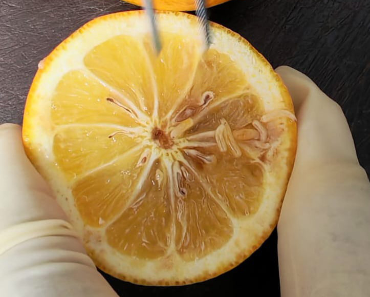 Cuando la hembra penetra la cáscara de la fruta y coloca el huevecillo, deja un agujero que permite la entrada de microorganismos como bacterias y hongos que demeritan la calidad de la fruta y causan que se pudra.