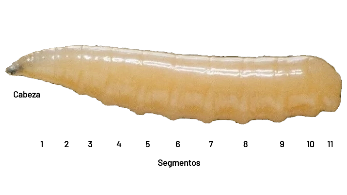 Características morfológicas de la larva de mosca del Mediterráneo